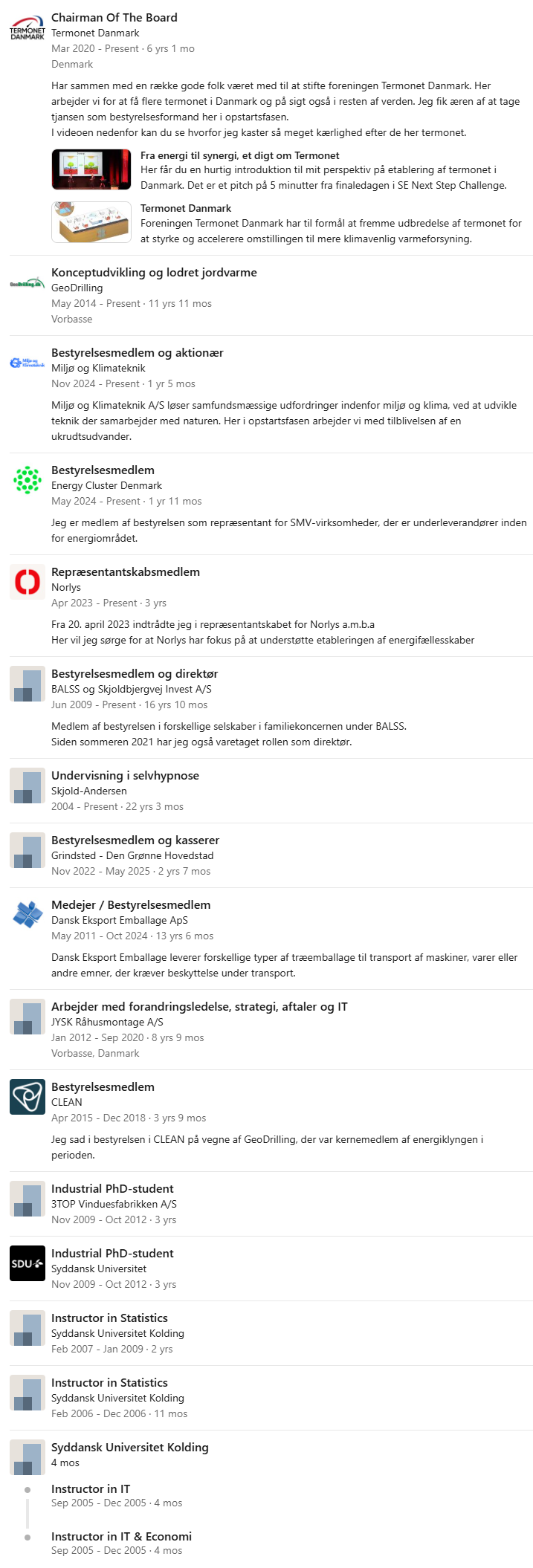 I 2020 var jeg medstifter og initiativtager til den almennyttige forening Termonet Danmark, der arbejder med at udbrede kendskabet og adgangen til kollektiv varmeforsyning baseret på termonet i de områder, hvor man ellers ikke har haft adgang til kollektiv varmeforsyning. Har du hørt eller læst ordet termonet, har jeg enten direkte eller indirekte haft en finger med i spillet.